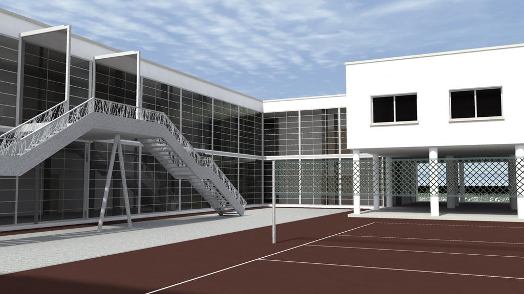 Il collegamento tra i due piani avverrà mediante due scale poste a ridosso della vetrata interna. L’edificio sarà munito altresì di quattro scale esterne con funzione di scale antincendio.